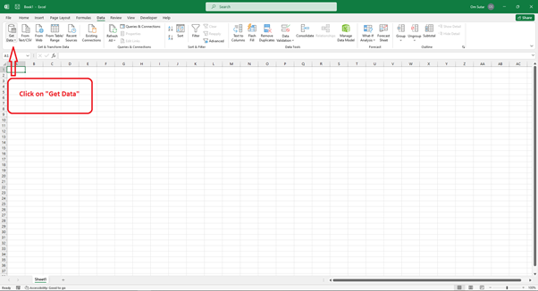 要訪問所需的資料匯入選項,請導航到“資料”選項卡,然後選擇“獲取資料”選項。