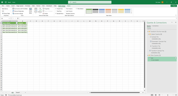 您將看到“檔名”和“列 1”等列,其中“列 1”包含每個文字檔案中的內容。