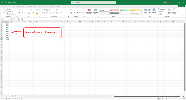 步驟 1 − 應採取的初始步驟是確保所有引用值都放置在單個行中。