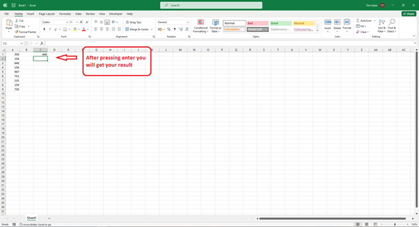 步驟 3 − 第三步是透過向下拖動結果列的填充柄來獲取所有所需的結果。