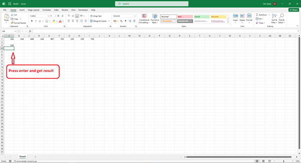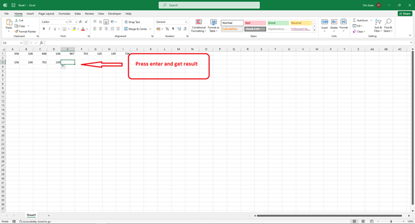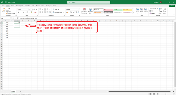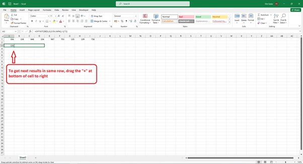 步驟 3 − 要獲取所有所需的結果,請將填充柄拖動到包含結果的行最右側位置。