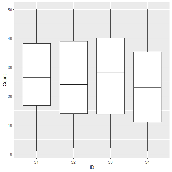 > library(ggplot2) > ggplot(df,aes(ID,Count))+geom_boxplot()