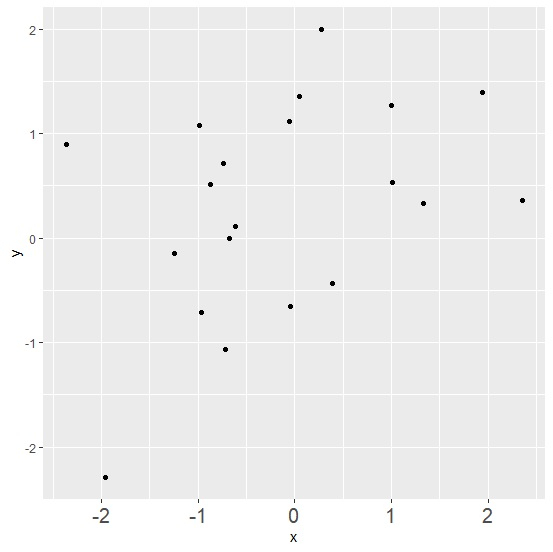 x<-rnorm(20) y<-rnorm(20) df<-data.frame(x,y) df