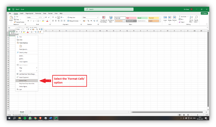 右鍵單擊單元格,然後從上下文選單中選擇“設定單元格格式”。