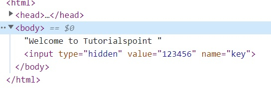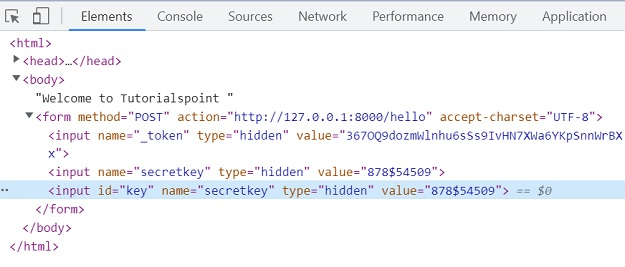 現在讓我們在上面建立的檢視中新增一個隱藏欄位。我們可以透過使用隱藏輸入欄位來實現,如下所示。在你的 **hello.blade.php** 中新增以下內容