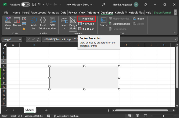 之後,選擇繪圖樣式,然後再次轉到“開發者”選項卡,在“控制元件”選項下,點選“屬性”按鈕。請參考以下提供的快照資料