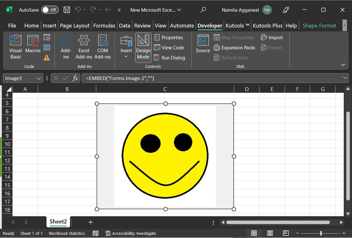本文分步驟解釋了一項任務,透過參考所有這些步驟,使用者可以輕鬆學習在Excel中插入有效圖片控制元件的方法。另一個需要記住的重要一點是,任何自建圖片也可以插入到Excel工作表中。為此,使用者首先需要建立一個圖片,並以正確的“.jpg”副檔名儲存它,然後將檔案儲存到有效位置,並記住該位置,因為使用者在將圖片匯入Excel工作表時需要使用該位置。