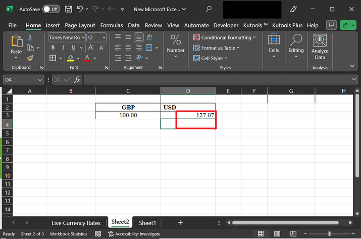 本文包含一個在Excel中更改即時匯率的示例,該示例從即時網站提取資料並相應地計算結果,提取的結果將在一段時間後重新整理。但是,如果需要,使用者也可以插入一個重新整理時間連結來重新整理資料。