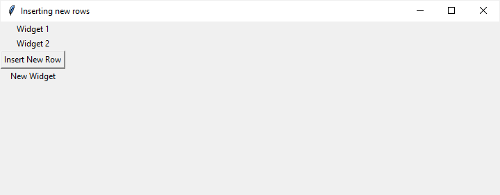 def insert_new_row(): new_label = tk.Label(root, text="New Widget") last_row = root.grid_size()[1] new_label.grid(row=last_row, column=0)