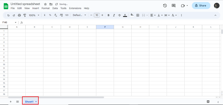 在開始建立新工作表之前,開啟Microsoft Excel。查詢Excel視窗底部的選項卡。預設情況下,可以看到一個名為“Sheet1”的表格。請參考下圖: