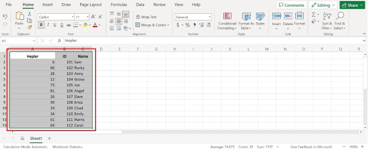 右鍵單擊以選擇完整的輔助列選擇,然後選擇“複製”。之後,將值貼上到使用者希望隨機數出現的位置。在此步驟中,公式將轉換為靜態值,確保數字保持不變,並且不會隨著每次新計算而改變。