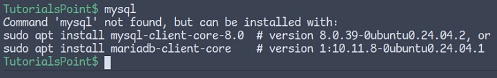如果您安裝了 MySQL 版本,此命令將顯示版本號。在我的例子中,我沒有安裝 MySQL,因此輸出如下所示: