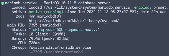 這將顯示 MariaDB 正在執行且處於活動狀態: