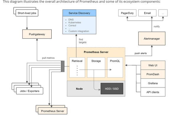 $ nano ~/prometheus.yml # A scrape configuration scraping a Node Exporter and the Prometheus server # itself. scrape_configs: # Scrape Prometheus itself every 5 seconds. - job_name: 'prometheus' scrape_interval: 5s target_groups: - targets: ['localhost:9090'] # Scrape the Node Exporter every 5 seconds. - job_name: 'node' scrape_interval: 5s target_groups: - targets: ['192.168.1.100:9100']