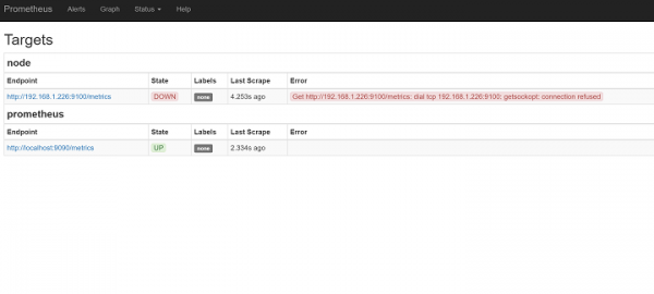 我們必須單擊狀態並單擊目標。我們可以看到節點作為不健康狀態,並看到節點匯出器尚未啟動。