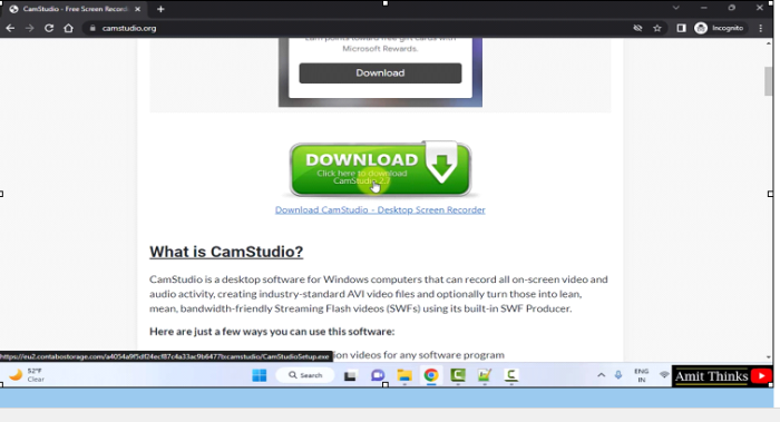 要在 Windows 上安裝 CamStudio,請開啟網頁瀏覽器並開啟官方網站 https://camstudio.org/ ,如下面的螢幕截圖所示: