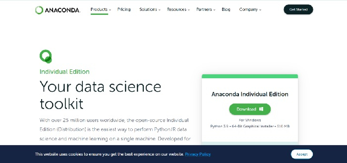 Anaconda是一個流行的Python程式執行時環境。Anaconda發行版提供了許多環境,例如Spyder(一個執行Python程式的IDLE)、Jupyter(一個允許使用者執行視覺化等操作的Web應用程式),以及Anaconda還包括一個PowerShell提示符,這是一種命令提示符,允許使用者在命令列上執行程式。