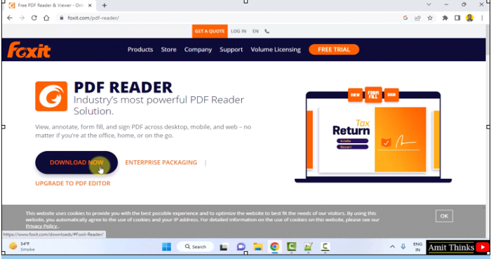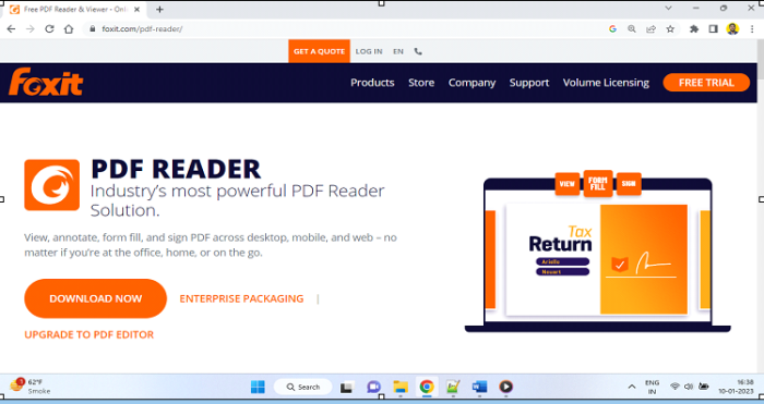 要在 Windows 上安裝 Foxit PDF 閱讀器,請開啟 Web 瀏覽器並訪問官方網站 https://www.foxit.com/pdf-reader/,如下面的螢幕截圖所示: