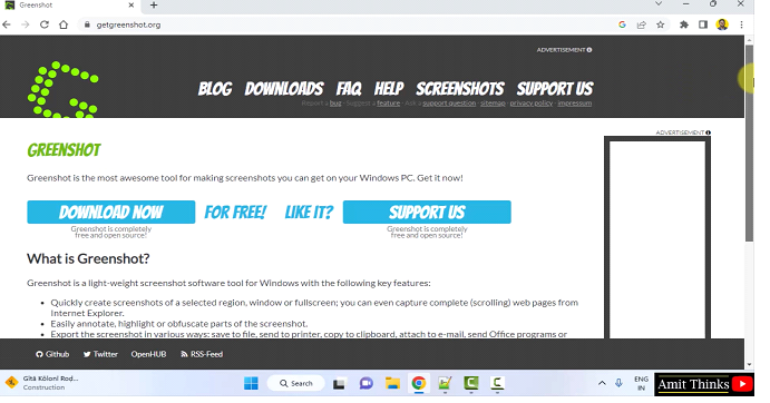 要在Windows上安裝Greenshot,請開啟網頁瀏覽器並開啟官方網站getgreenshot.org,如下面的螢幕截圖所示: