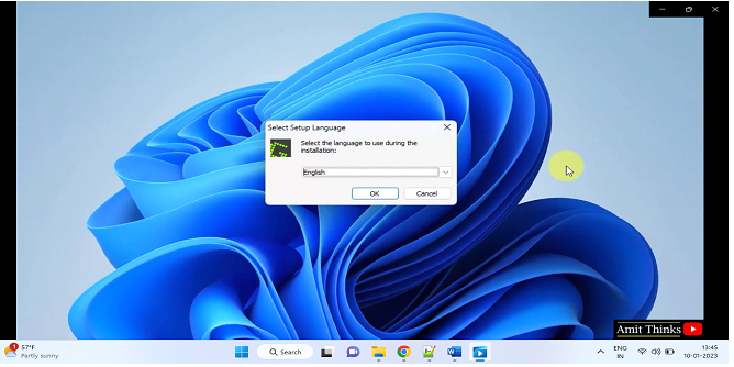 安裝開始。安裝語言預設設定為英語。您可以輕鬆地從下拉選單中更改語言,然後單擊確定。我們選擇的是英語: