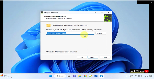 將會顯示選擇目標位置部分。在這裡,設定Greenshot的安裝路徑。我們將設定以下預設位置:
