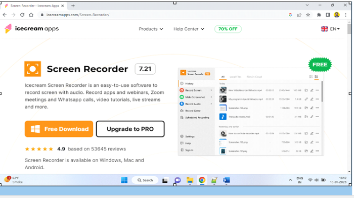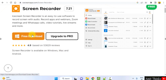 要在Windows上安裝Icecream螢幕錄影機,請開啟網路瀏覽器並訪問官方網站 https://icecreamapps.com/Screen-Recorder/ ,如下面的螢幕截圖所示:
