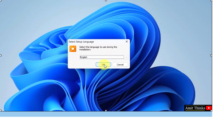 安裝開始,您需要在此處選擇安裝語言。點選下拉選單選擇您要安裝Icecream螢幕錄影機的語言。我們將保留預設語言,即**英語**,然後點選**確定**: