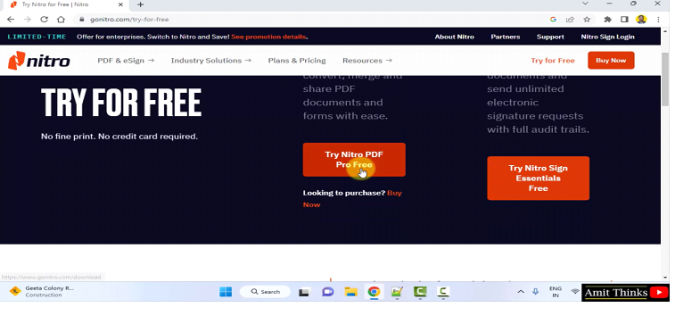 現在,您將進入下載部分。要下載免費版本,請單擊“免費試用Nitro PDF Pro”: