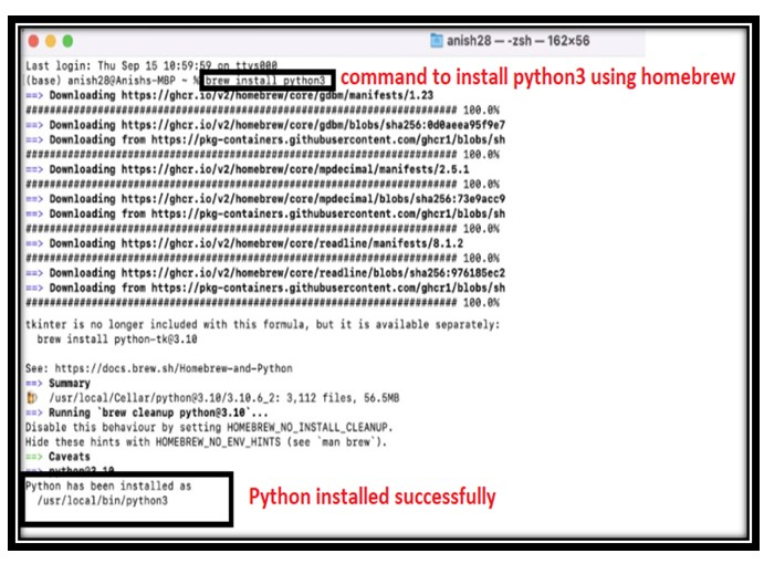 安裝 Homebrew 後,您將可以在終端中使用一個名為 brew 的新命令。此命令將安裝 Python 3 和 NumPy。