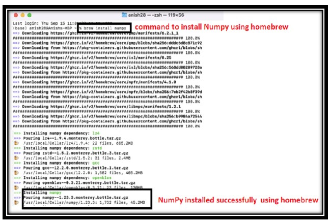 # Installing Numpy using the brew install command brew install numpy --with-python3