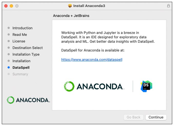 可選:安裝程式描述了 Anaconda-JetBrains 合作伙伴關係,並提供了一個連結以在 https://www.anaconda.com/dataspell 安裝 Anaconda 的 DataSpell。