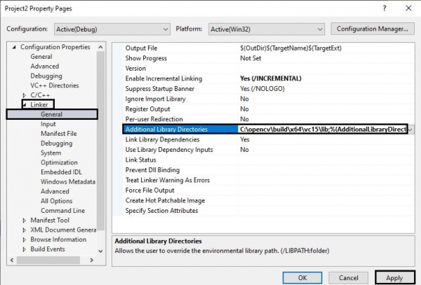 Debug資料夾位於OpenCV的“build”資料夾內的“Lib”資料夾內。如果您已將OpenCV解壓到C盤,則路徑為C:\opencv\build\x64\vc15\lib。