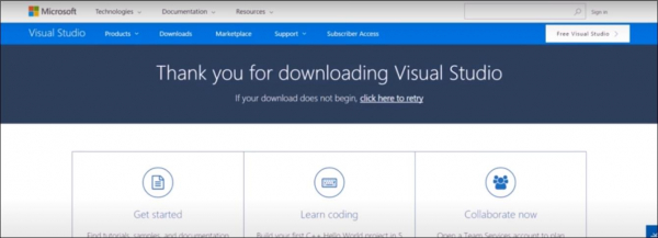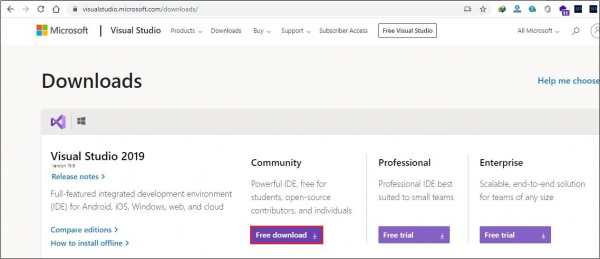 第一步是從其官方網站下載Visual Studio到您的系統,或者點選連結https://visualstudio.microsoft.com/downloads/。