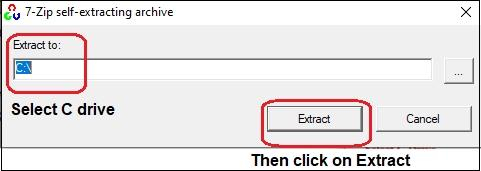 下載完成後,執行檔案並將其解壓到C盤。下圖將幫助您更好地理解。