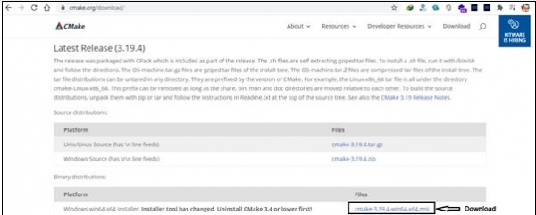 第一步是從其官方網站或提供的連結https://CMake.org/download/下載CMake到您的系統。