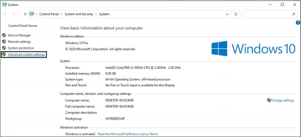 - 右鍵單擊“此電腦”,然後按屬性。然後按“高階系統設定”。將開啟一個新視窗。
