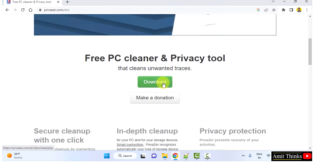 要在Windows上安裝PrivaZer,請開啟網頁瀏覽器並訪問官方網站 https://privazer.com/en/ ,如下圖所示:
