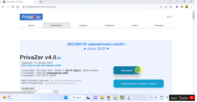 點選上面的“下載”後,將開啟一個新頁面,其中顯示所有PrivaZer版本。點選**下載**: