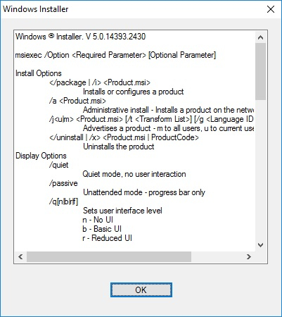 如果您檢查 MSI 檔案中可用哪些引數,請使用以下命令。