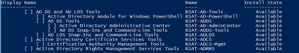 在您的系統中安裝RSAT工具後,您可以使用PowerShell命令啟用此功能。要獲取系統中可用的Active Directory工具功能,請使用以下命令。
