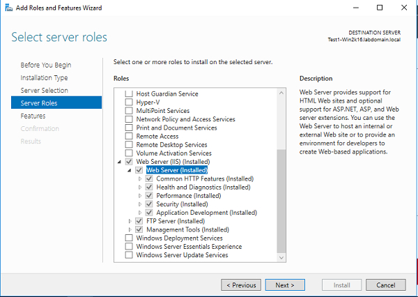Install-WindowsFeature Web-Server -IncludeAllSubFeature -IncludeManagementTools -verbose VERBOSE: Installation started...
