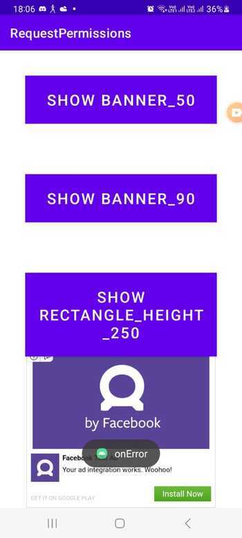 使用FAN SDK請求橫幅廣告,並指定廣告位置ID。