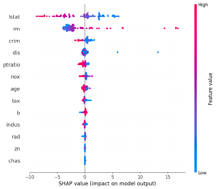 在本節中,我們將透過一個例子來了解如何使用SHAP值解釋機器學習模型。為了更好地理解,我們將使用一個機器學習模型、顯示SHAP值並利用一個公開可用的資料集。我們將詳細講解每個步驟。我們將使用著名的波士頓房價資料集,該資料集提供了波士頓房屋的詳細資訊,經常用於迴歸分析(預測房價)。
