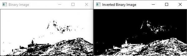 bitwise_not() 函式反轉源矩陣的畫素值並將其儲存在目標矩陣中。源矩陣是'binary_image',目標矩陣是'inverted_binary_image'。