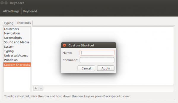 要為xkill建立鍵盤快捷鍵,請搜尋鍵盤並選擇快捷鍵。它將顯示如下螢幕: