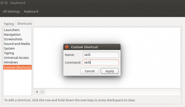 現在點選應用按鈕,雙擊xkill並輸入您想要設定為xkill快捷鍵的鍵。這裡,我們使用Shift+Ctrl+Alt+x,如下所示: