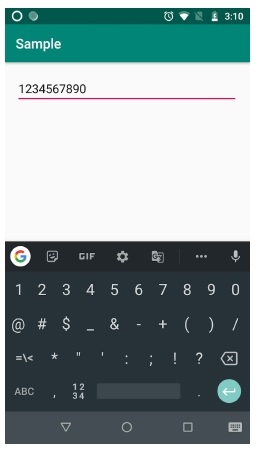 <? xml version= "1.0" encoding= "utf-8" ?> <LinearLayout xmlns: android = "http://schemas.android.com/apk/res/android" xmlns: tools = "http://schemas.android.com/tools" android :layout_width= "match_parent" android :layout_height= "match_parent" android :layout_margin= "16dp" tools :context= ".MainActivity" > <EditText android :layout_width= "match_parent" android :layout_height= "wrap_content" android :hint= "Enter something..." android :maxLength= "10" /> </LinearLayout>
