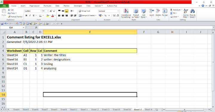 使用者可以使用簡單的示例來演示如何使用Ku-tools選項卡將批註列出到新的工作表或工作簿中。我們可以列出或建立我們選擇的批註數量,並將資料編譯到新工作表中以列出批註。使用者使用Ku-tools選項卡建立或列出所有批註,使用“建立批註列表”功能。使用者使用了功能區中包含的重要選項卡。