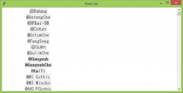 執行上述程式碼將顯示一個視窗,其中包含 Tkinter 支援的可用的字型列表。
