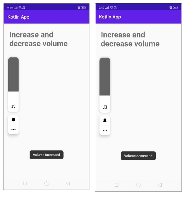 <?xml version="1.0" encoding="utf-8"?> <RelativeLayout xmlns:android="http://schemas.android.com/apk/res/android" xmlns:tools="http://schemas.android.com/tools" android:layout_width="match_parent" android:layout_height="match_parent" android:padding="24dp" tools:context=".MainActivity"> <TextView android:id="@+id/textView" android:layout_width="wrap_content" android:layout_height="wrap_content" android:layout_centerHorizontal="true" android:text="Increase and decrease volume" android:textSize="32sp" android:textStyle="bold" /> </RelativeLayout>